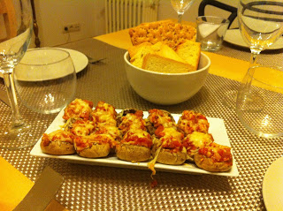 À última hora trocamos os camarões, na entrada, pelos cogumelos recheados.
