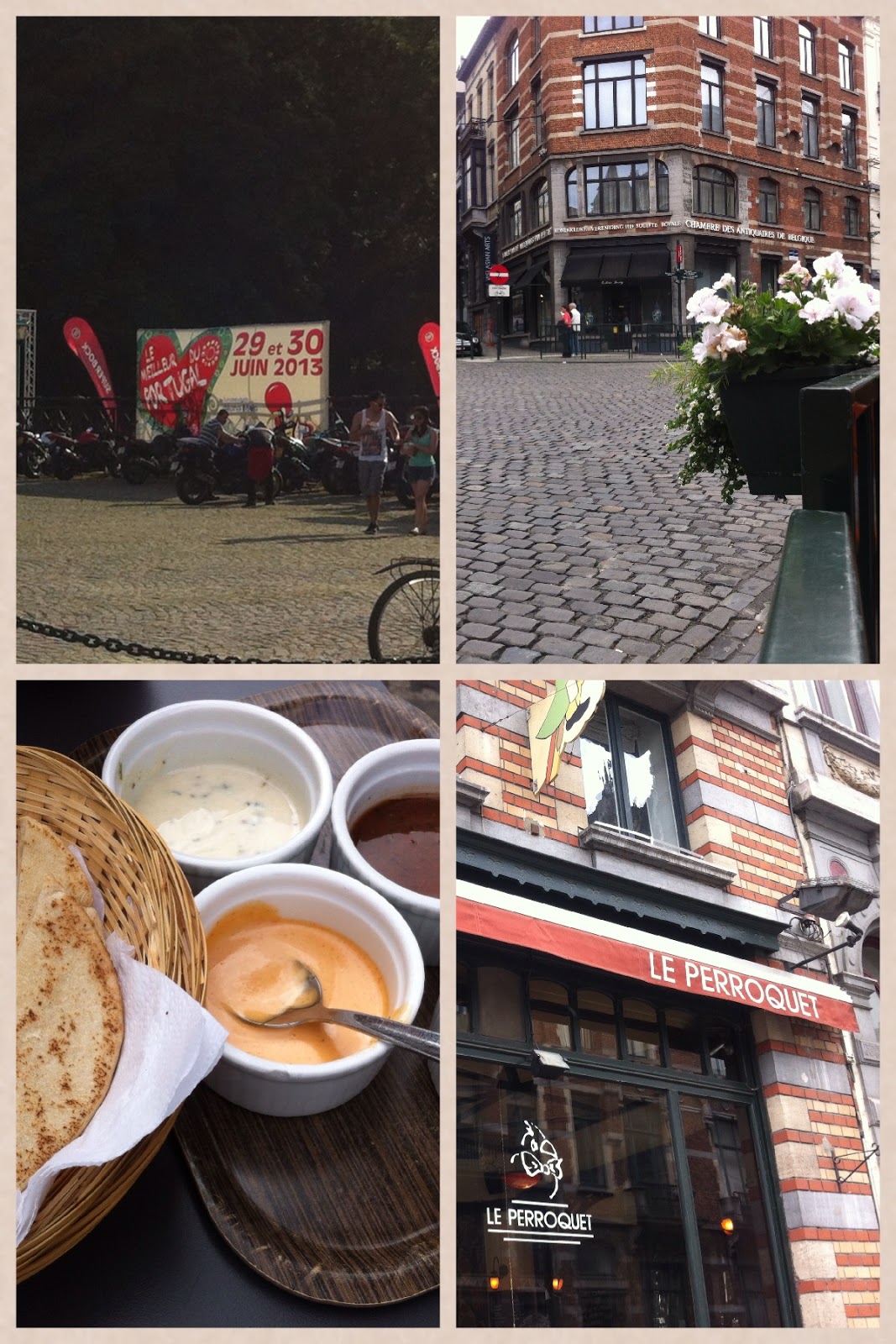 No domingo, ficamos pelo bairro, aproveitando que algumas lojas estavam abertas, para dar uma vista de olhos nos saldos. A paragem para almoçar foi no Sablon, no Perroquete. Este restaurante é um daqueles locais de paragem obrigatória. A especialidade são as pitas, mas as saladas são igualmente boas. No entanto, não posso deixar de referir aqui que o atendimento hoje não primou pela qualidade, entre algumas trocas e enganos nos nossos pedidos, ainda tivemos direito a um empregado que acho por bem dar repostas indelicadas aos clientes. Não foi feliz, mas talvez estas situações aconteçam com alguma regularidade por não haver livro de reclamações. Todavia, devo referir aqui que, na minha opinião, não é uma situação/pessoa isolada que deve denegrir a imagem de um estabelecimento. Vamos continuar a dar o beneficio da dúvida... talvez o jovem estivesse apenas num dia mau!