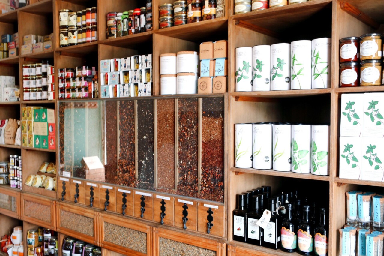 Com a visita ao mercado de Estremoz no sábado de manhã, optamos por ficar ali a almoçar. Por sugestão de uma amiga, tínhamos reserva feita na Mercearia Gadanha que, como o nome indica, é também uma mercearia, em conjunto com o restaurante. À entrada, encontram uma selecção única de produtos alentejanos, sem esquecer os azeites e o vinho, claro.