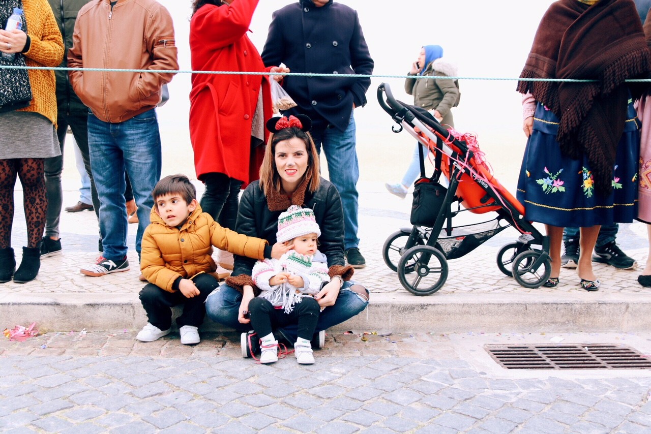 Saímos cedo de casa e regressamos tarde. Tiramos a Laura da sua rotina e isso obrigou-nos a doses de paciência extra. Na pressa de sair de casa e na troca de tarefas entre os pais, o casaco da Laura acabou por ficar pendurado na porta do quarto dos miúdos, acabei por ter que comprar um “kit” numa das lojas típicas da zona para remediar. O Vicente, de inicio estava meio estranho, mas depressa se rendeu à festa e estivemos na primeira fila a atirar fitas e confettis. Resistimos estoicamente ao frio e ao vento, os olhos dos dois brilhavam e, no regresso a casa, o cansaço do Vicente fê-lo adormecer mal se sentou no carro, ao passo que o cansaço da Laura fê-la vir a viagem toda entre choro e gritos.