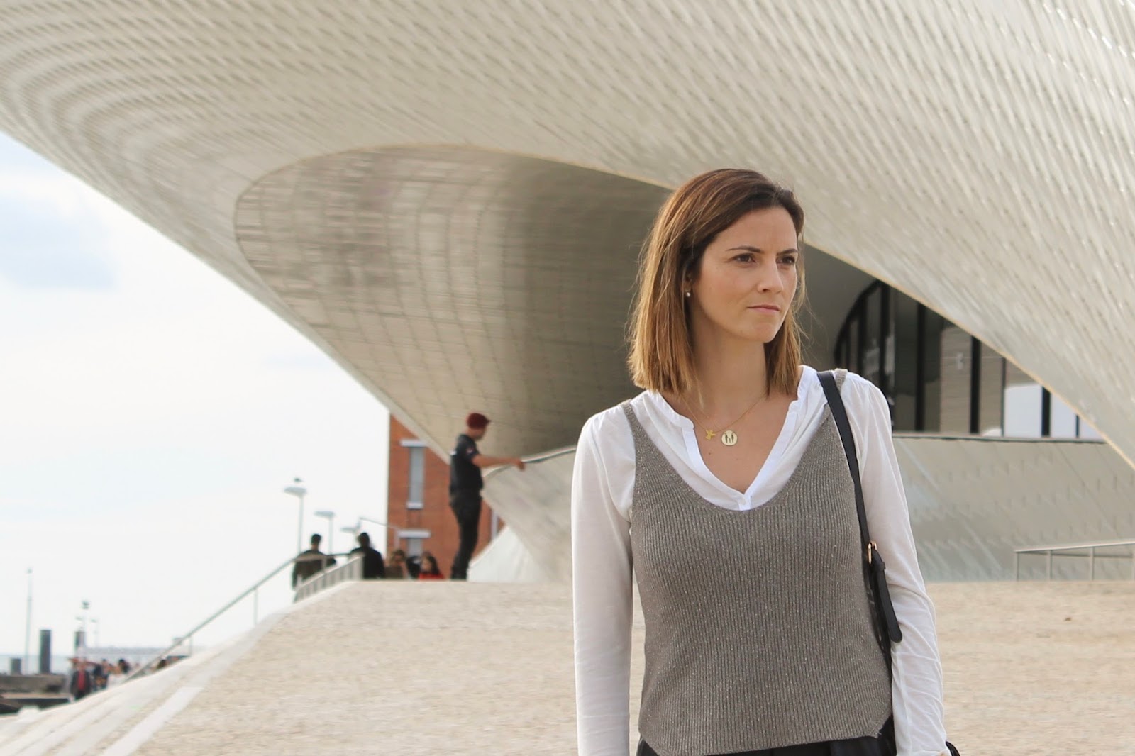 Na parte de cima, tenho um top em malha de outra das minhas marcas de eleição - a B Simple Barcelona, que tem, entre outras peças, malhas lindas, de óptima qualidade e daquelas cores em que dá vontade de ter uma de cada. Sei que a Margarida está a preparar uma edição mega especial para o mercado da Stylista - dias 26 e 27 de Novembro na Coordoaria Nacional - e eu vos garanto que vai valer a pena passarem por lá!
