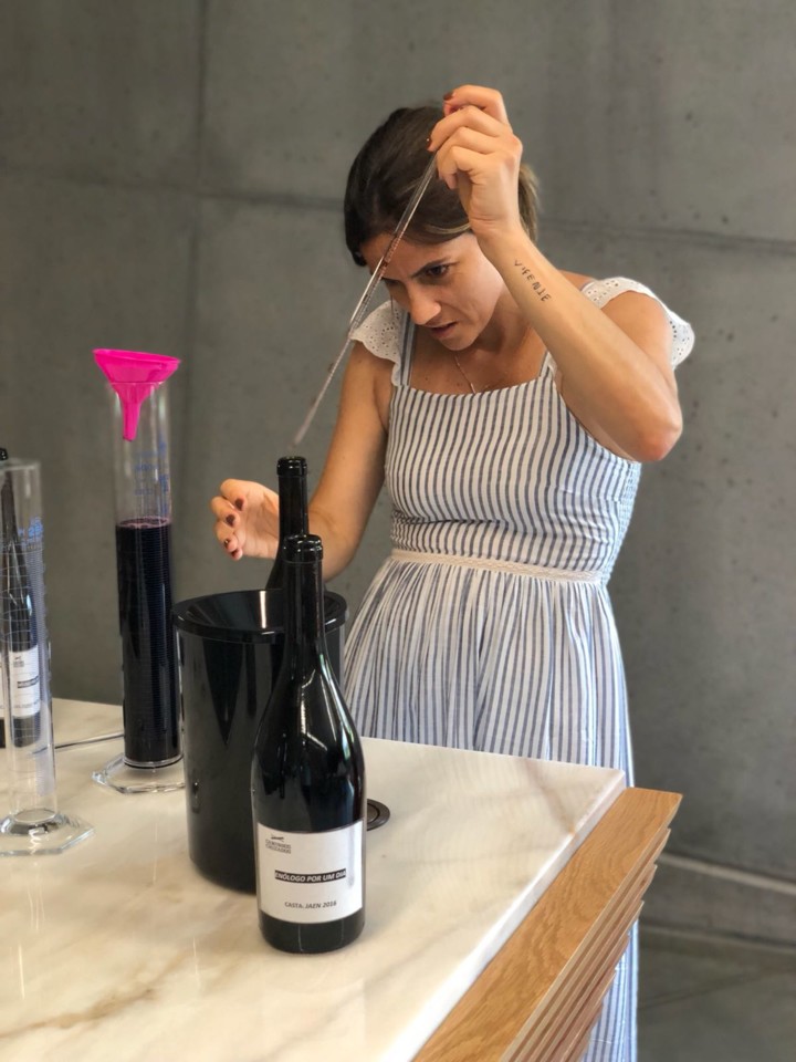 No caso, era-nos dado a experimentar três castas de vinho diferentes (Alfrocheiro, Touriga e Jaen) as quais iríamos descrever. Posteriormente, o objectivo era misturar aquelas três castas, de acordo com a nossa preferência, com percentagens de cada uma definida por nós, que iriam resultar num Blend.