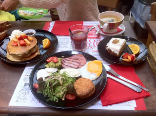 O tempo, mesmo sem frio, tem estado instável, com períodos de muito vento e de chuva, muito pouco convidativo a passeios. E, em dias como estes, uma das coisas que ainda nos faz sair de casa é procurar um bom brunch, daqueles que são um pequeno-almoço reforçado e não propriamente um almoço. Ou então, simplesmente fazer panquecas em casa e beber chá, enquanto o meu gatinho se pendura nas minhas pernas de boca aberta para comer também!