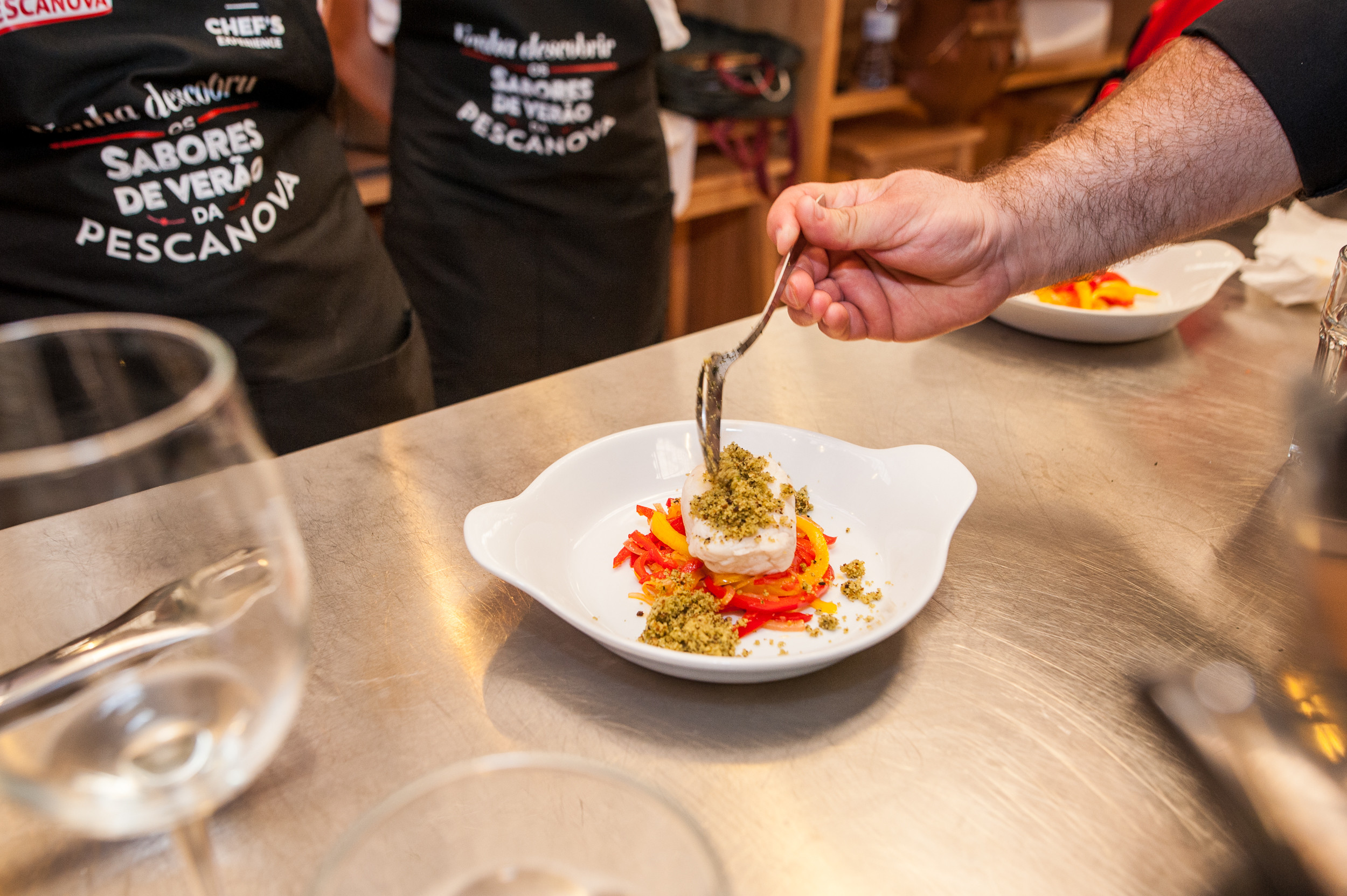 Para nos ajudar nesta tarefa, tínhamos connosco o Chef Miguel Mesquita e o actor Lourenço Ortigão, que tem a plataforma digital www.enjoycooking.pt, com vídeo-receitas deliciosas com os produtos Pescanova. A acompanhar, uma presença muito importante a da nutricionista Raquel Abrantes. Com ela podemos tirar todas as dúvidas, pois sem defender uma posição radical, deu-nos algumas dicas de como melhorar a qualidade das nossas refeições sem necessariamente termos que alterar aquilo que comemos.