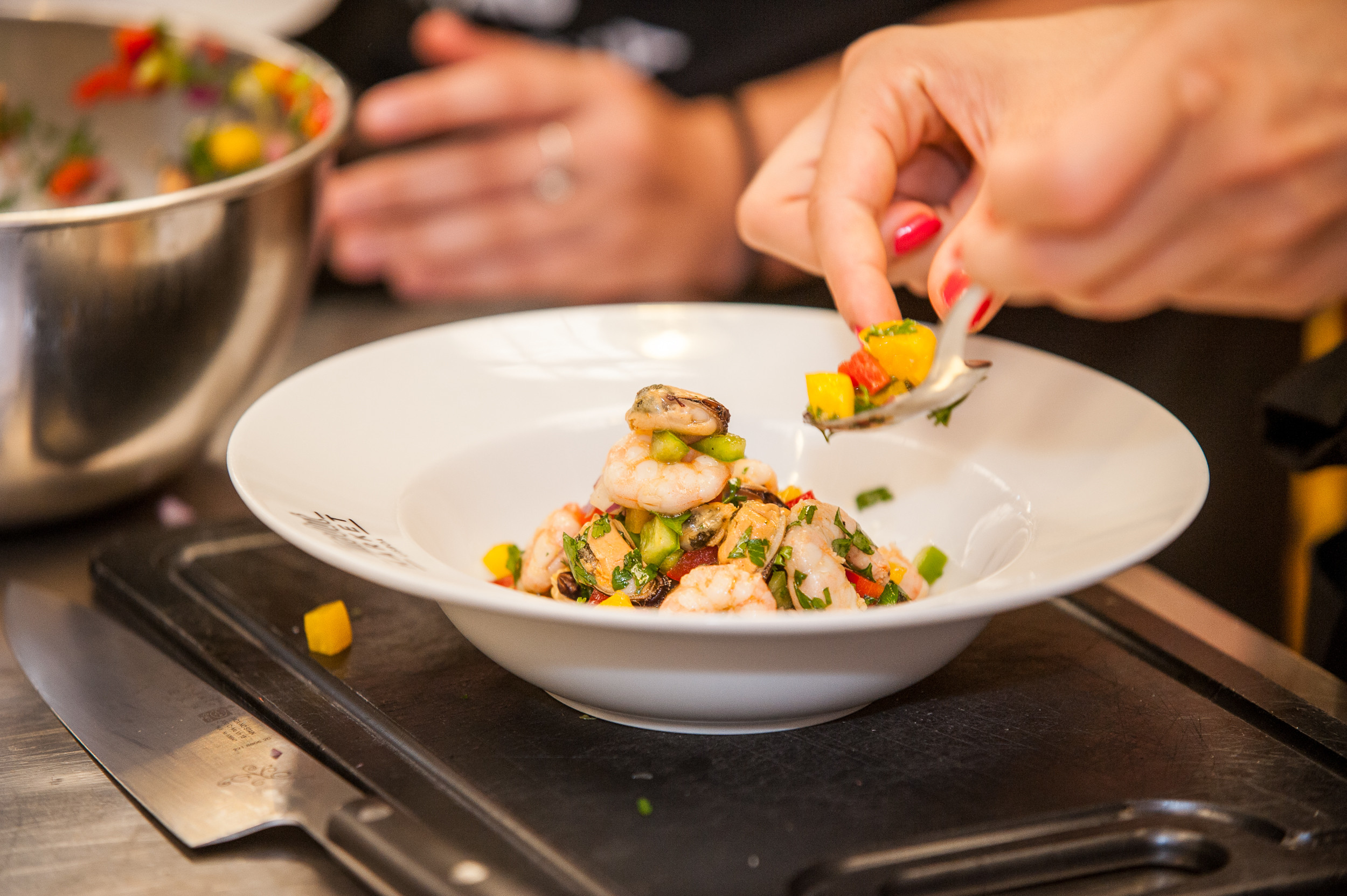 Foi ontem o workshop da Pescanova "Sabores de Verão", no Samsung Chef's Experience do Time Out Market, numa parceria com a Samsung. O objectivo era dar a conhecer novas e diferentes formas de cozinhar tendo como ingrediente principal alguns dos produtos da marca. Comigo foi a Ana Marques, a vencedora do passatempo e uma entusiasta pela cozinha. Aliás, foi a oportunidade perfeita para poder cozinhar, já em casa tem um marido que é chef que faz questão de assumir o comando das refeições da família.