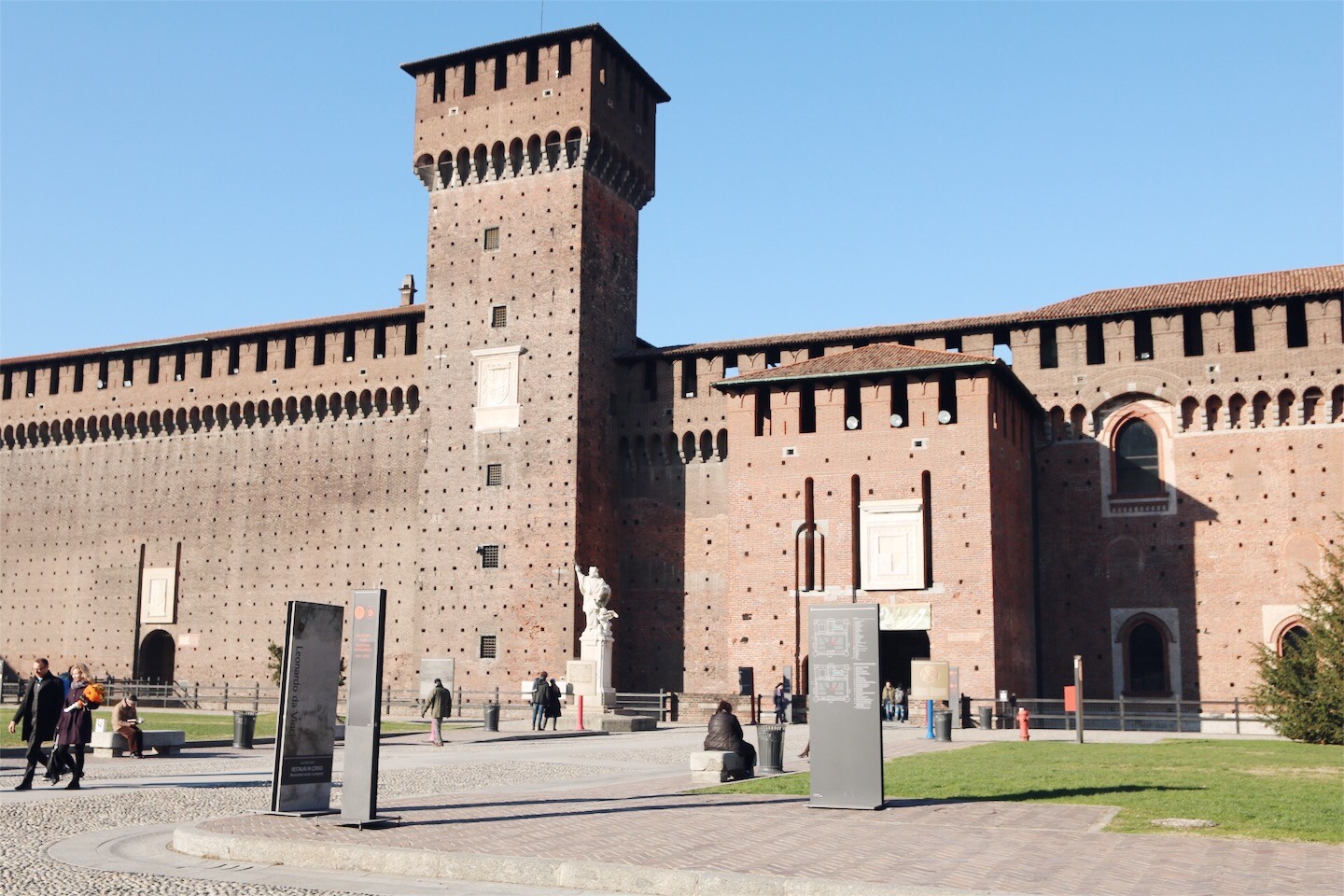 - No primeiro dia, percorremos o Parque Sempione, onde está situado o Arco da Paz, um enorme espaço, nesta altura do ano, com cores de Outono, localizado mesmo ao lado do Castelo Sforzesco. Este Castelo data do século XIV e actualmente é sede de vários museus. É ainda aqui que, por exemplo, a Pietà Rondanini, de Michelangelo, tem um lugar reservado só para ela.