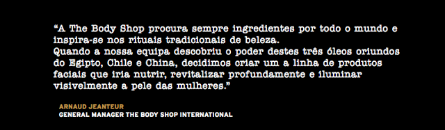 A cada dia que passa e que vou descobrindo um pouco mais os produtos da marca The Body Shop, vou ficando mais convencida de que são, de facto, a alternativa que precisamos. Com uma filosofia assente em tudo o que é natural, contra os testes em animais, tem mostrado que, mesmo assim, é possível inovar e tornar os produtos mais sofisticados e adequados às nossas necessidades diárias, de acordo com o nosso estilo de vida.