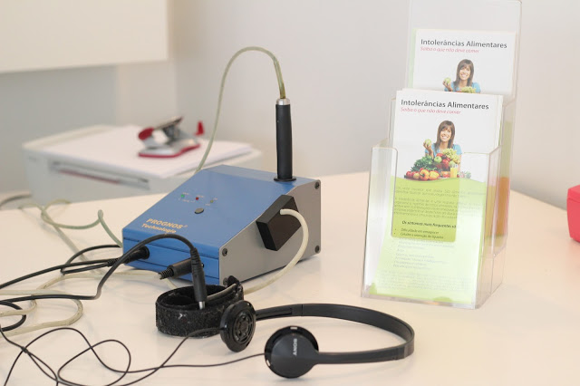 Porém, há poucos dias estive na clínica ICare, situada nas Twin Towers, em Lisboa, para fazer o teste de intolerâncias alimentares, com a Dra. Paula Henriques, directora da Clínica. Este teste é feito através de bioressonância. O que é que isto quer dizer? Durante 16 anos, vários alimentos foram estudados em laboratórios e a engenharia electrotécnica retirou a frequência vibracional desses alimentos. Para este exame, é usado, então, o biofeedback que vai medir a energia dispendida na absorção desses mesmos alimentos. Esta medição é feita nos dois polegares, por ser bastante prático, mas podia ser feita em qualquer outro ponto (de acupunctura) e, por isso, é não evasivo.