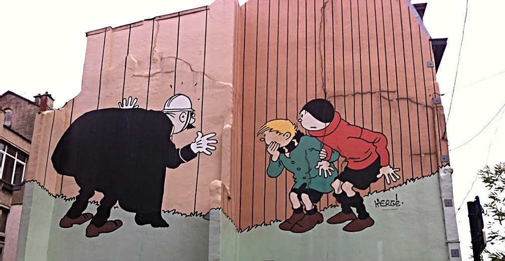 | Um dos muitos paineís alusivos às histórias do Tintin espalhados pela cidade. Este fica em Marolles |