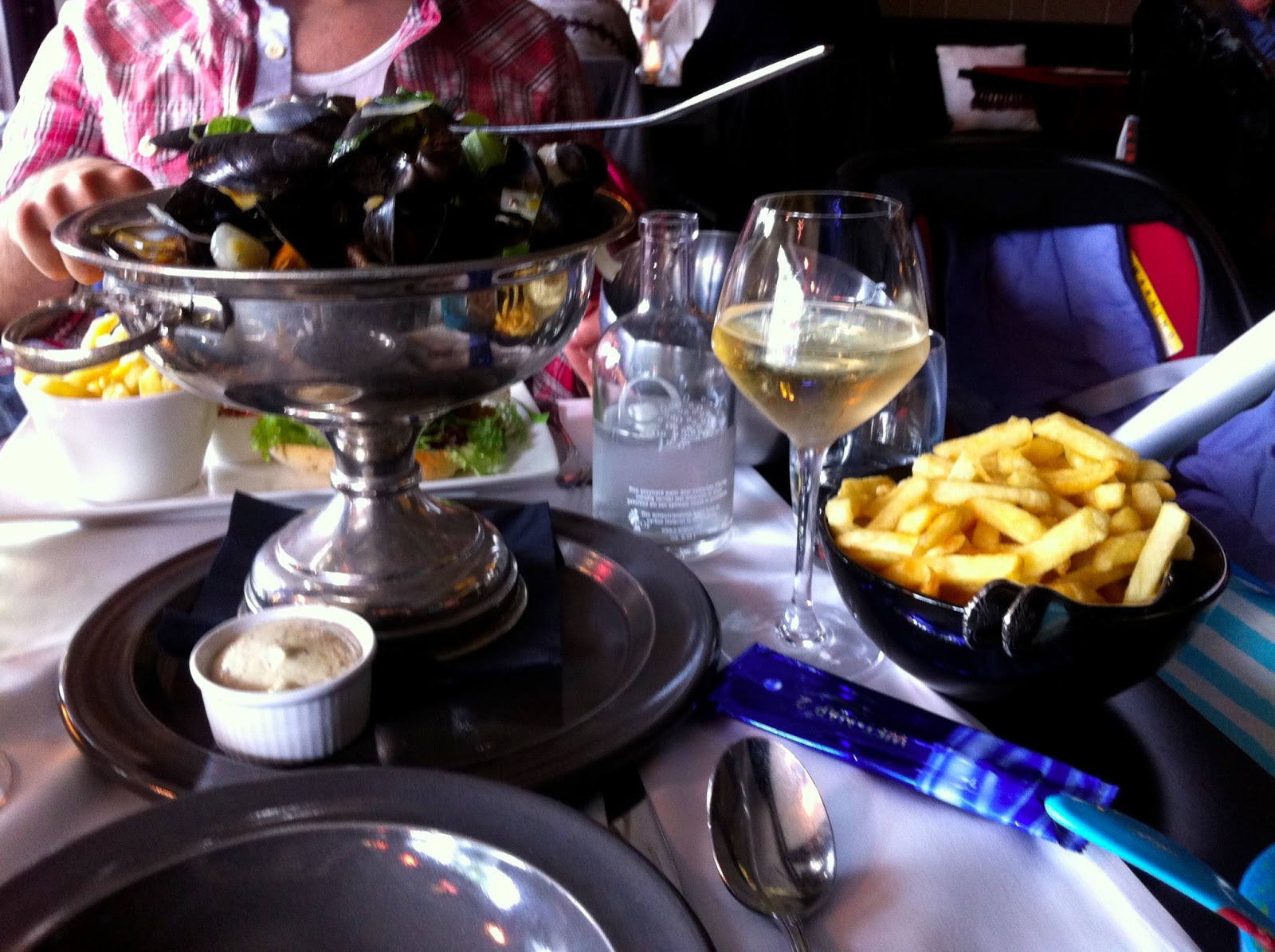Todos os funcionários foram muito simpáticos, o espaço em si é muito acolhedor e a comida óptima. Eu comi... tchan tchan tchan... moules e o marido um hamburger xpto. Convém referir que foi a primeira vez que o V comeu a sua sopa fora de casa e portou-se lindamente, conseguimos sair de lá sem deixar sopa por todo o lado! OBA :)